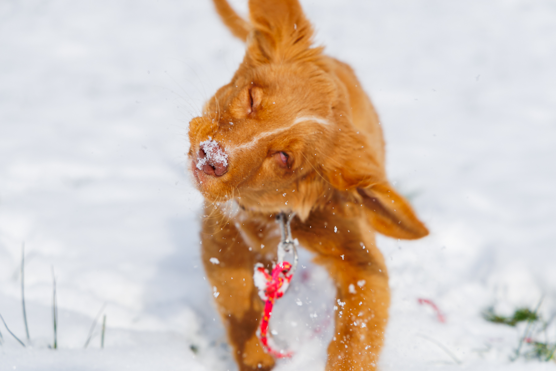 Natürlich mussten gleich beim ersten Schnee Fotos von meinem kleinen Schatz gemacht werden. Zu Beginn war er noch skeptisch und wollte den Schnee meiden, aber nach mehrmaligem rausgehen, war er doch davon überzeugt, dass der Schnee was Tolles ist.