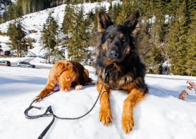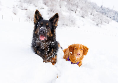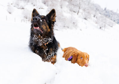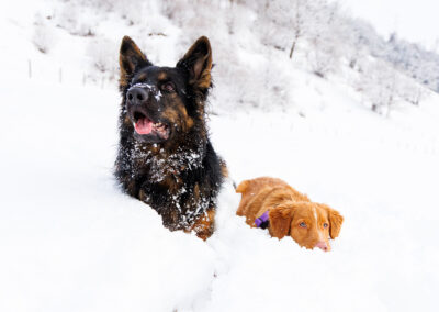 Endlich hat es so richtig geschneit! Das musste natürlich gleich ausgenutzt werden. Ich liebe ja Fotos im Schnee! Einen besseren Kontrast kann man ja nicht erreichen und die Hunde sind einfach immer so glücklich im Schnee! Dieses Mal gibt es auch die ersten Enzo mit Nolan Fotos.